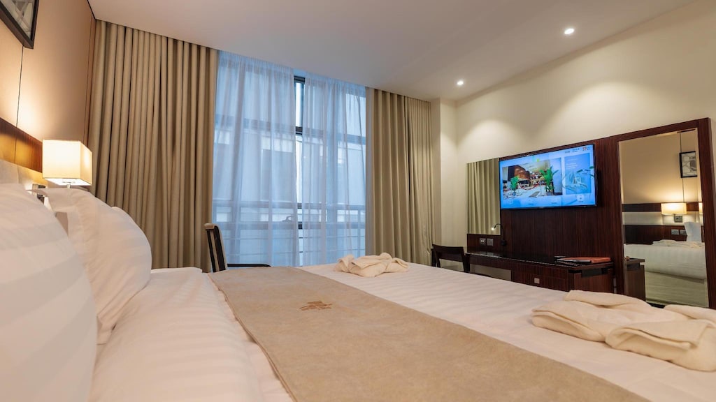 تتميز غرف الفندق بتصميم مريح وعصري، حيث تحتوي على تكييف هواء، تلفزيون بشاشة مسطحة، وخدمة واي فاي مجانية. كما تضم الغرف مكتب عمل وشرفة بإطلالة على الجبل أو المدينة. وتشمل جميع الغرف حمّامًا خاصًا، بياضات أسرّة، مناشف، وصندوق ودائع آمن، بالإضافة إلى ثلاجة صغيرة لضمان إقامة مريحة للنزلاء.