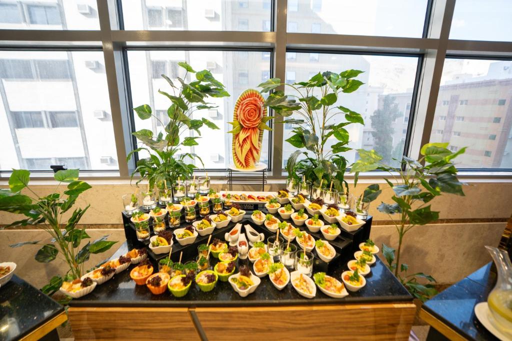 يضم الفندق مطعماً يقدم تشكيلة من الأطباق المتنوعة، بالإضافة إلى توفر العديد من المطاعم والكافيتريات القريبة في حي أجياد. يحرص فندق لمار أجياد الأول على تقديم إقامة تجمع بين الراحة وجودة الخدمة، بما يناسب زوار بيت الله الحرام.