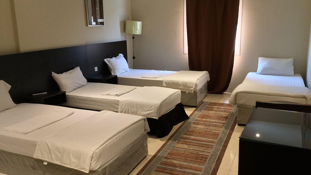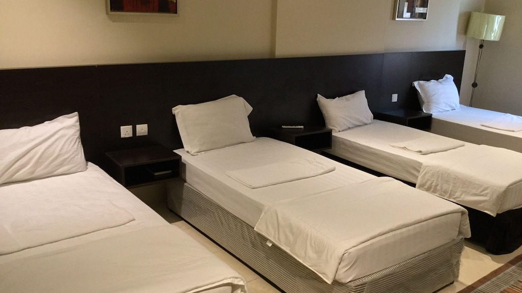 غرفة رباعية (30 م²): تحتوي على أربعة أسرّة مفردة، مناسبة للعائلات والمجموعات.