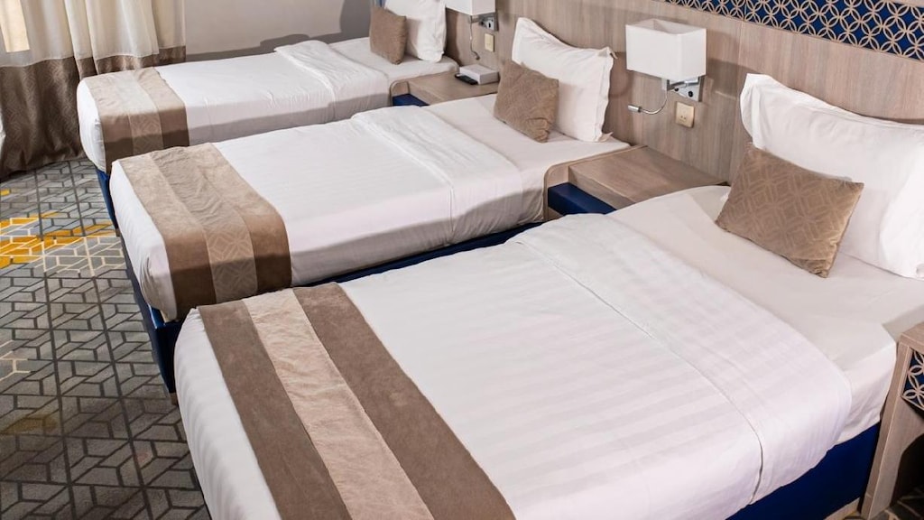 Durrah Valencia Hotel offers comfortable family-friendly accommodation in Medina. The hotel features well-equipped family rooms with private bathrooms, air conditioning, and balconies. Each room includes a TV, bathrobes, and complimentary toiletries, ensuring a relaxing and convenient stay.